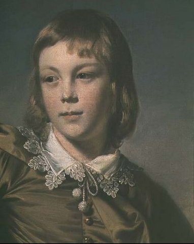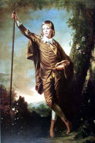 The other person featured in My Daily Art Display today is the person depicted in the painting, 12-year old Master Thomas Lister, who would become the 1st Baron Ribblesdale of Gisburn Park in 1797 when he was forty-five years old. Reynolds has given the young lad’s face a flattering, slightly romantic look. The young boy looks thoughtful as he stands leaning slightly on his stick. There are child-like qualities in the way in which he has been portrayed. He is at an “in-between” age, neither man nor boy he is embarking on a new stage in his life. His costume is of plush velvet and reminds one of the ways Anthony Van Dyke, a century earlier, painted portraits of aristocrats which gave them a look of both grandeur and poise. In this picture the colour of Thomas Lister’s clothes blends with the colour Reynolds used for the background which has an Arcadian feel to it is reminiscent of classical landscapes of the Italianate painters.