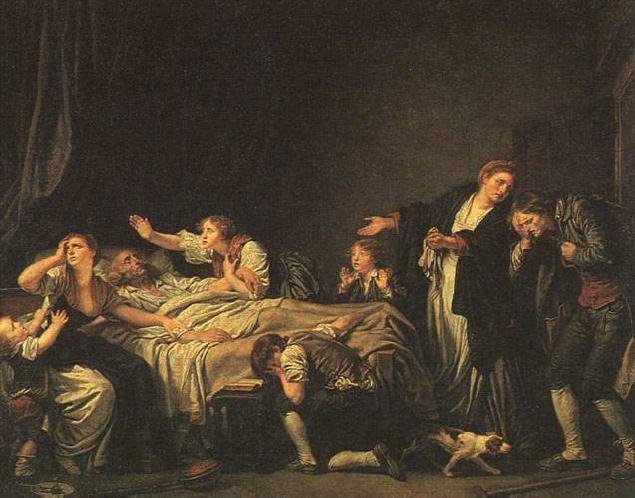 In 1765 he became a member of the Académie in Paris with his historical picture in the Grand Manner entitled Coroesus Sacrificing himself to Save Callirhoe. By 1767 his style had changed and his works became more erotic. One example of this I featured in My Daily Art Display of March 29th when I gave you his beautiful work entitled The Swing, which is now housed in the Wallace Collection in London. In 1769 Fragonard married Marie-Anne Gérard who was a miniaturist and history painter. Marie-Anne’s sister Marguerite Gérard, studied under Fragonard and was to become one of the greatest French female artists. Fragonard and his wife had a daughter, Rosalie, two years later and she was often used as a model in her father’s paintings. The following year his son, Alexandre-Évariste, was born and he would also go on to be a talented painter and sculptor.