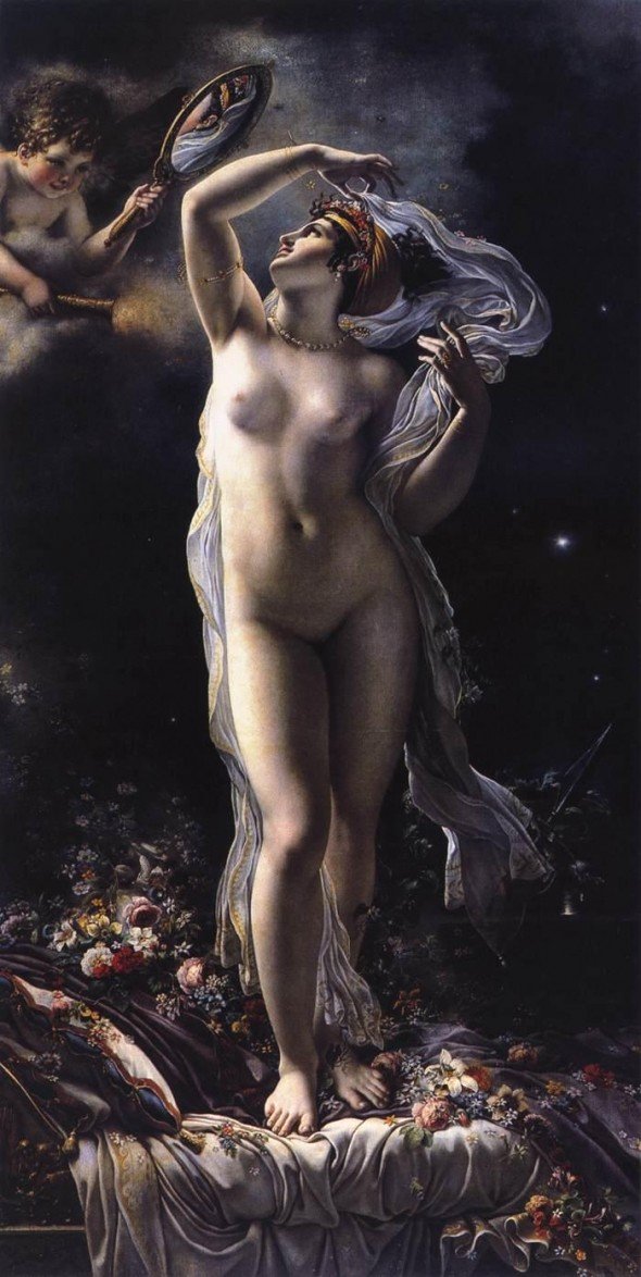 My Daily Art Display today has the slight whiff of scandal about it, or to be more precise, about the sitter for the painting. It is a tale of two paintings, a disgruntled sitter and a furious artist. The title of today’s featured works are Mademoiselle Lange as Danaë and Mademoiselle Lange as Venus and the artist who painted both these rather erotic works in 1799 was the French painter and illustrator, Anne-Louis Girodet de Roucy-Trisson but more commonly known as Anne-Louis Girodet. Here was an artist whose works straddled the rationalism of Neoclassicism and the flights of fantasy associated with Romanticism.