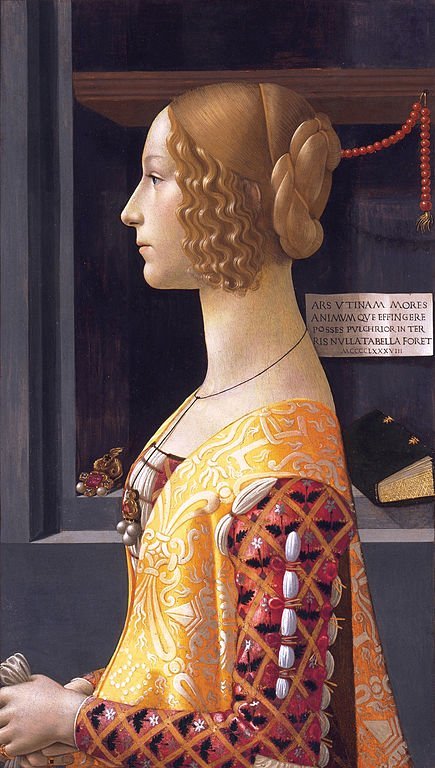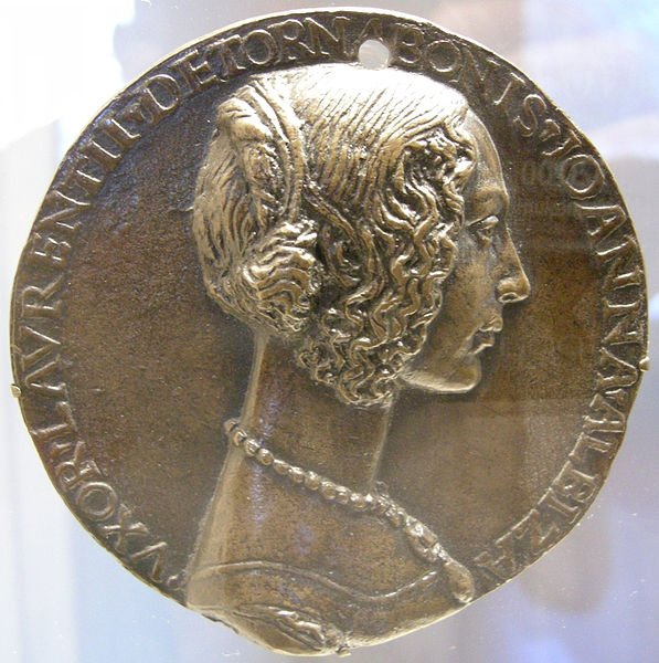 Today I want to offer you a beautifully crafted portrait by the 15th century Italian artist Domenico Ghirlandaio entitled Portrait of Giovanna degli Albizzi Tornabuoni which he completed in 1490 and which is now part of the permanent collection at Madrid’s Thyssen-Bornemisza Museum. Giovanna was the wife of Lorenzo Tornabuoni who came from the wealthy Florentine banking family and whose father, Giovanni was Domenico Ghirlandaio’s patron. We know this is the image of Giovanna as at the time of her marriage to Lorenzo a series of bronze portrait medals with her image were made to commemorate the event and the likeness of the figure on the medal and in the painting is undeniable. Lorenzo and Giovanna married in June 1486 but sadly she died giving birth to her second son in 1488, at just twenty years of age. As the portrait was completed after she died, it is thought that it could be looked upon as a kind of remembrance painting. The painting hung in her husband’s private rooms in the Tornabuoni Palace.