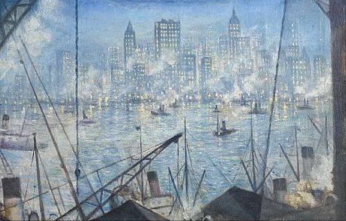 Roussel was born in the French town of Lorient in Brittany in March 1847 and was educated in France. He was called to arms by his country during the Franco-Prussian War of 1870 but in 1878 he moved to England and settled in London. Two years later he married an English lady, Frances Amelia Smithson Bull. Roussel had always loved to sketch and paint and was, for the most part, self taught. When he settled in the English capital he managed to secure studio space in Chelsea with two English artists, George Percy Jacomb-Hood and Thomas Henry. A couple of years after working in his Chelsea studio, Roussel began to exhibit some of his paintings. His breakthrough came in 1885 when he was introduced to one of his neighbours, the successful artist, James McNeil Whistler, who had seen Roussel’s paintings and had been very impressed by the standard of his work. Despite Whistler being thirteen years older than Roussel, it was not long before the two became firm friends, probably because some of their works of art centred around the same subject matter – London and the Thames river. They also shared similar artistic tastes and had similar views with regards the art establishment. Roussel now became one of Whistler’s London circle of friends which included Walter Sickert, Paul Maitland and Wilson Steer. Like Whistler, Théodore Roussel became a member of the Royal Society of British Artists in 1887 but both resigned from the Society the following year.
