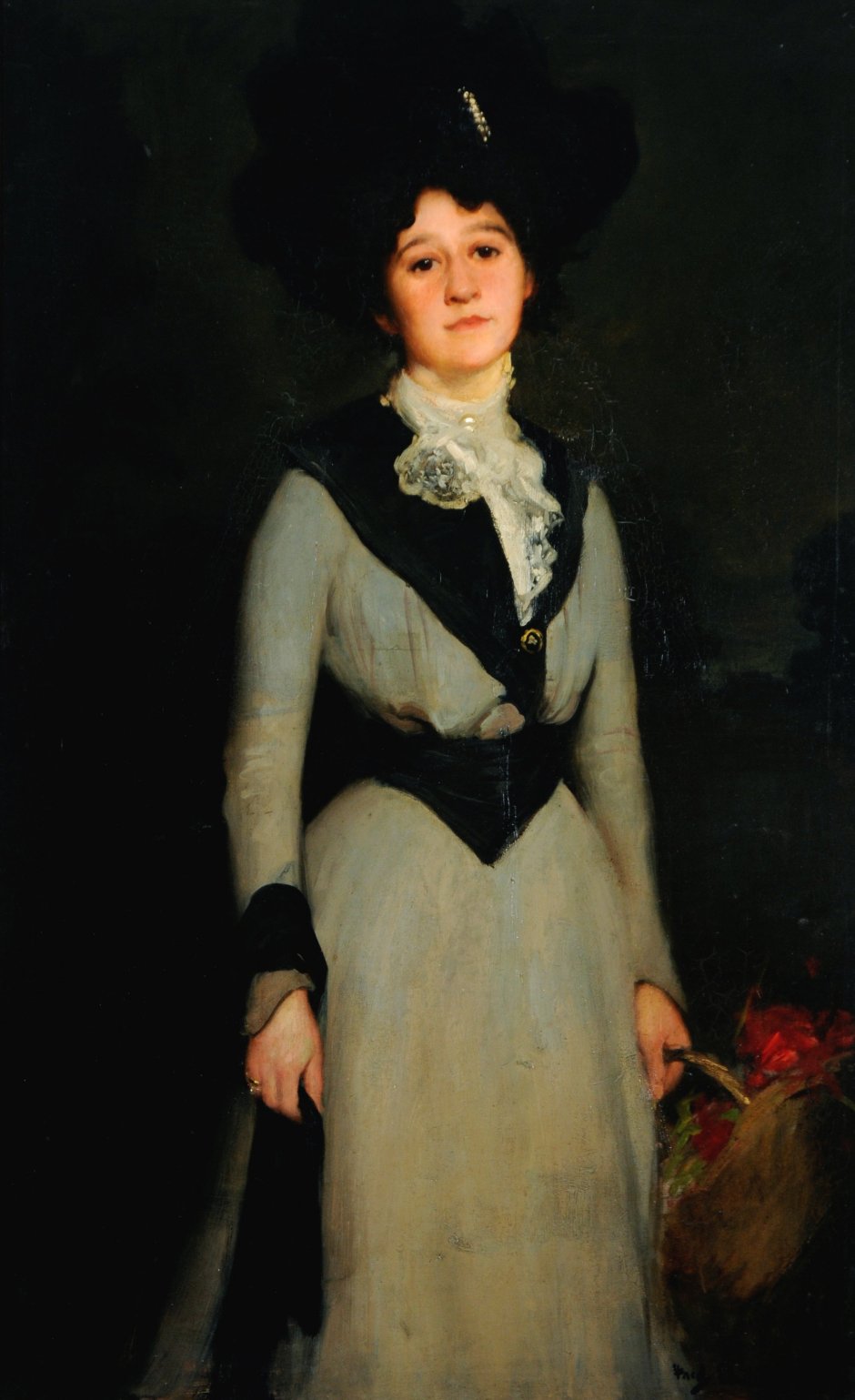 Clausen often used this model for his paintings and one I particularly like featuring her was completed in 1881 and entitled a Spring Morning, Haverstock Hill. It was exhibited at that year’s Royal Academy exhibition. This London street scene was an ambitious work featuring not just the main female model, who walks along the street accompanied by a small child, but a number of other characters some at rest, some at work, including labourers digging up the cobbles in the road and, directly behind the main character, a flower seller.