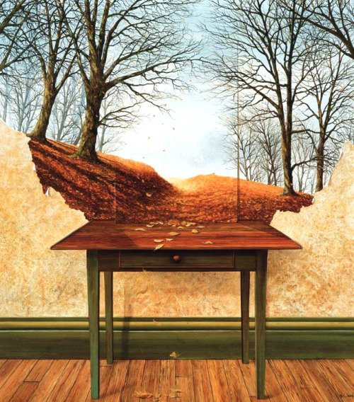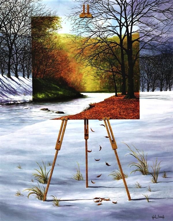 Within six months things turned for the worse for the family with galleries not wanting his paintings and with sales tumbling, they were in trouble. For Neil, it was a time of introspection, a time to figure out why things had gone wrong and more importantly work out what people wanted from art. He needed time to reassess his art and, to give himself a chance to do this, Linda took their son and went back to live with her mother. He realised the most important question he had to answer was what did he want from his art for he realised his mistake of suffocating his own imagination which once set ablaze his passion for art. Neil thought long and hard and eventually hit on the idea that people may like to view works which would transport them into an alternative vision of reality. He wanted observers of his work to question what were they actually looking at. This was of course a form of surrealism, which he had dabbled with eight years earlier but had abandoned believing that he must paint what the public wanted and not what he wanted.
