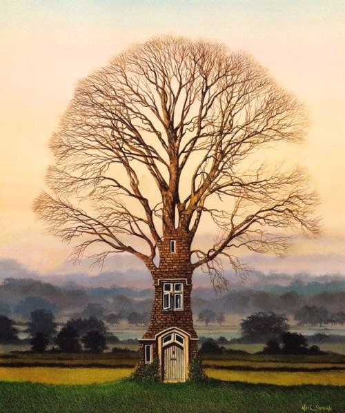Having said all that let me introduce you to the English Surrealist painter Neil Simone. The reason for this entry was that last week I was in the picturesque Yorkshire town of Harrogate and I visited Suttcliffes Contemporary Gallery, in the Montpellier Quarter of Harrogate and came across his works and actually bought one of his prints, The Retreat, as I was so fascinated by it. The one thing I like about some works of Surrealism, and I am a great fan of René Magritte, is that they are thought-provoking and quirky and I wonder how the artist ever came up with the ideas they put on canvas.