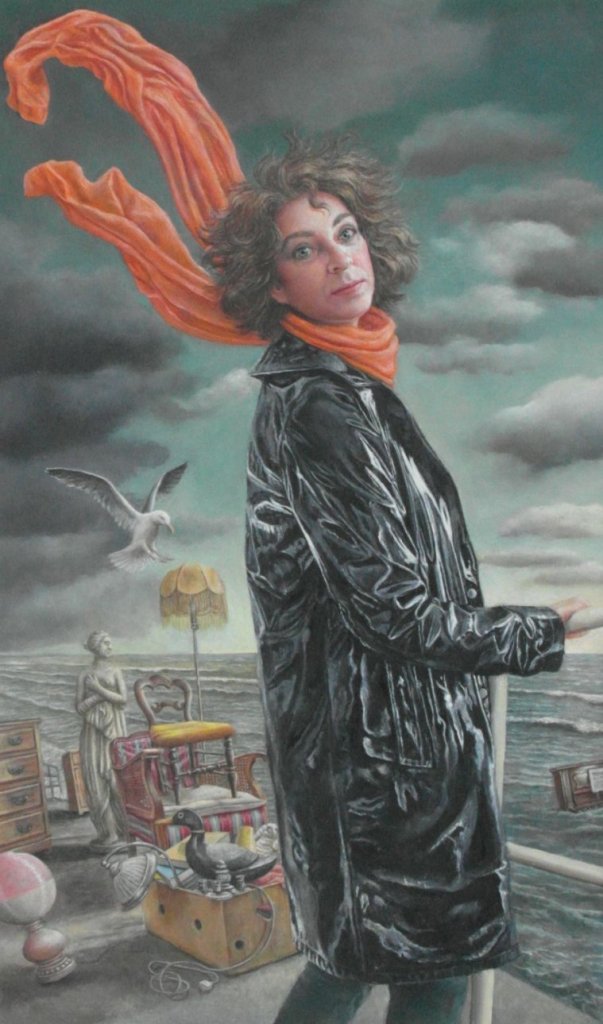 Her work displays an interest in, and a deep knowledge of, three visual art traditions, the Narrative, the Surreal and the Symbolic, marrying all together through her use of highly personal imagery. Her paintings are painstakingly crafted, taking months to produce one glowingly detailed art work. The paintings are icons of magical realism, the known with the mysterious. In making art she is making sense of the world and we, in viewing the work become part of that process, part of the drama…”