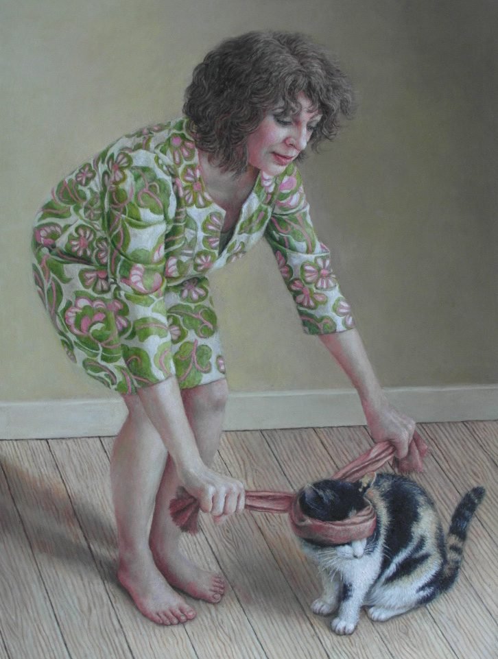“…Sally’s paintings are intriguing, there is a drama being enacted, a story unfolding. Sometimes the stage set is a domestic one, or an everyday scene, a seemingly familiar and therefore reassuring picture. We are drawn in as eager observers, only to realise that we have become participants in the story.
