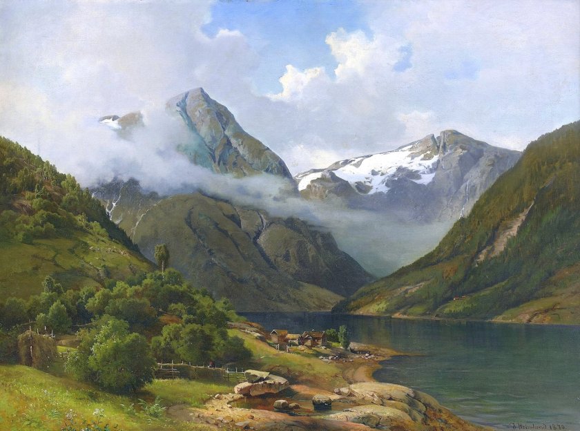 Many of her landscape paintings featured the breath-taking “V” shaped fjords such as Fjord Landscape with Farm, the one she completed in 1870. There is a beautiful tranquillity about this depiction.