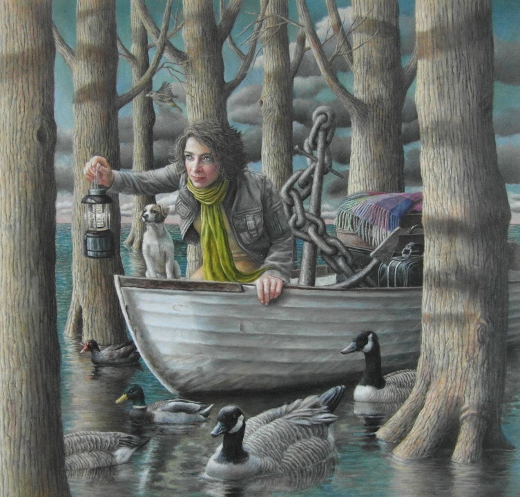 In this blog, I am looking at the work of a living surrealist artist and as I told you in an earlier blog about another living artist, Neil Simone (My Daily Art Display – May 24th 2017), who coincidently could also be classed as a surrealist, I try and avoid blogging about painters who are still alive, for fear of upsetting them!!! My featured artist today is the Welsh-born surrealist painter Sally Moore.
