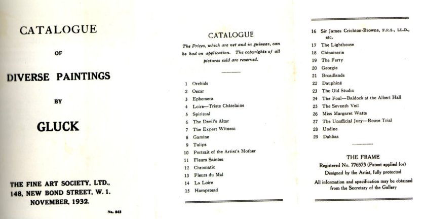 “…The essential feature of the Gluck frame’, according to a note in the catalogue of her 1937 Fine Art Society exhibition, ‘is that it becomes part of any wall whatever its character, colour or period… It can be painted the same colour as the wall, or covered with the same wall-paper, or made in any wall material…”