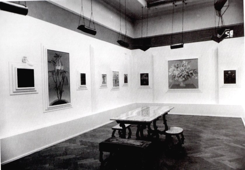 Gluck designed the interior of the Gluck room. It was a series of white panelled bays and pilasters which echoed the steps of the Gluck frames and this resulted in a unified effect of pictures and their setting. Modern furniture was added. Twenty-nine of Gluck’s paintings were shown at this exhibition, eleven of them were depictions of flowers with the pride of place going to her painting entitled Chromatic. Others on display were portraits of her mother, James Crichton-Browne, Margaret Watts and Georgina Cookson.