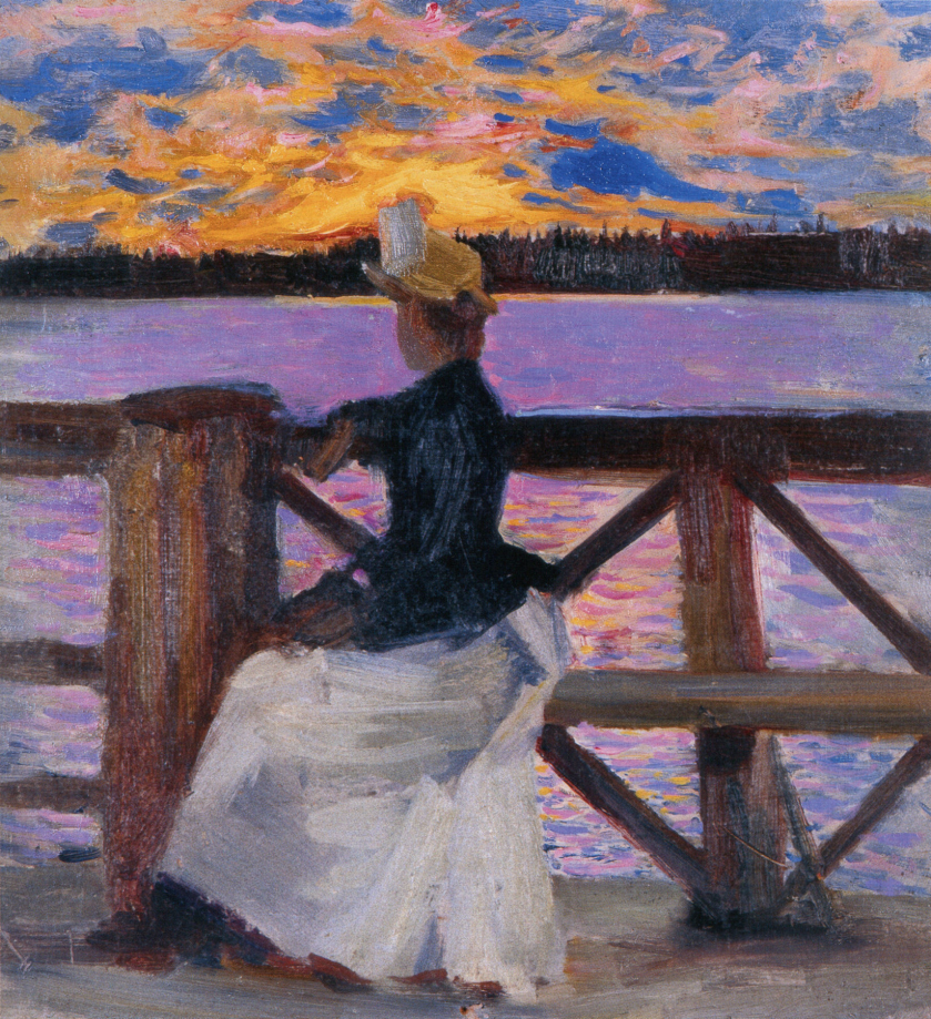 Axel and Mary secretly got engaged in spring 0f 1887 during his visit to Finland and before returning to his artistic studies in Paris. Once Axel’s paintings began to sell and his financial situation had improved, the couple married at the home of Mary’s parents on May 20th 1890. They went on honeymoon to Kuhmo in the south-east of Finland. Axel completed a number of paintings during the honeymoon including Marie Gallén at the Kuhmoniemi-bridge.