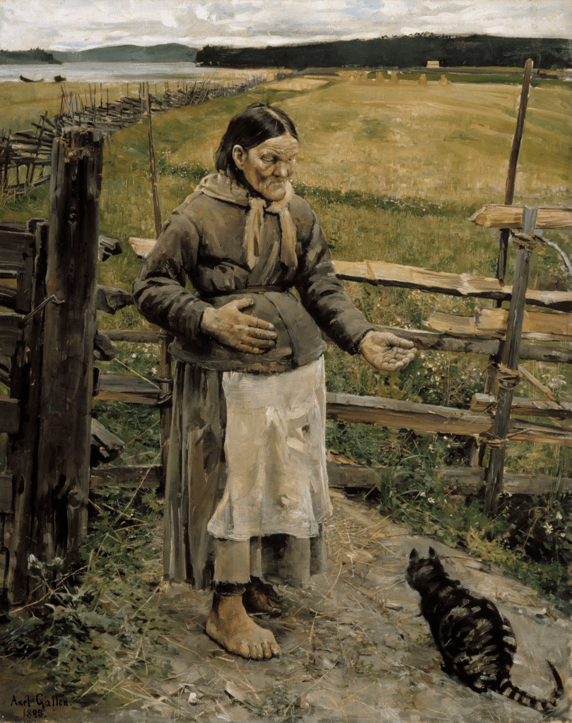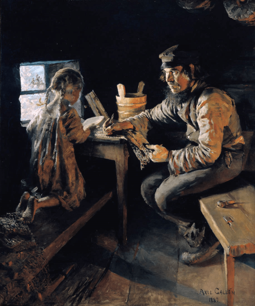 There the couple were joined by Swedish artist, Count Louis Sparre, whom Axel had met whilst in Paris. The two men also made a couple of week-long trips to northern Russian Karelia. Axel Gallén was organising himself to paint a new version, commissioned by the government, of his Aino triptych, and whilst in Karelia he hoped to find models and themes for his work. He also planned to enter a new competition, set by the Savo-Karelia Students’ Association to provide illustrations for the Kalevala, an epic poem, consisting of 22,795 verses, divided into fifty songs, compiled by Elias Lonnrot, derived from Karelian and Finnish oral folklore and mythology. It is regarded as the national epic of Karelia and Finland and is one of the most significant works of Finnish literature.
