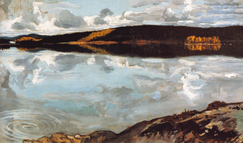 In 1905 Axel Gallén produced one of his most famous works, Lake Keitele. It is one of the artist’s most eloquent and haunting renditions of the subject and it is still the only painting by him in a public collection in Great Britain. It is housed in the National Gallery in London. Strangely the artist painted four versions of the picture between 1904 and 1906. The year, 1904, had not started well for Axel. He and his wife had been travelling around Europe and during their stay in Granada in southern Spain Axel contracted malaria. He and his wife returned to Finland so that he could recuperate. The couple rented a lodge in Konginkangas on the shores of Lake Keitele which was more practical than returning to his remote studio in Ruovesi. The painting depicts the lake’s scenic shores and crystalline waters which are bathed in brilliant northern light.