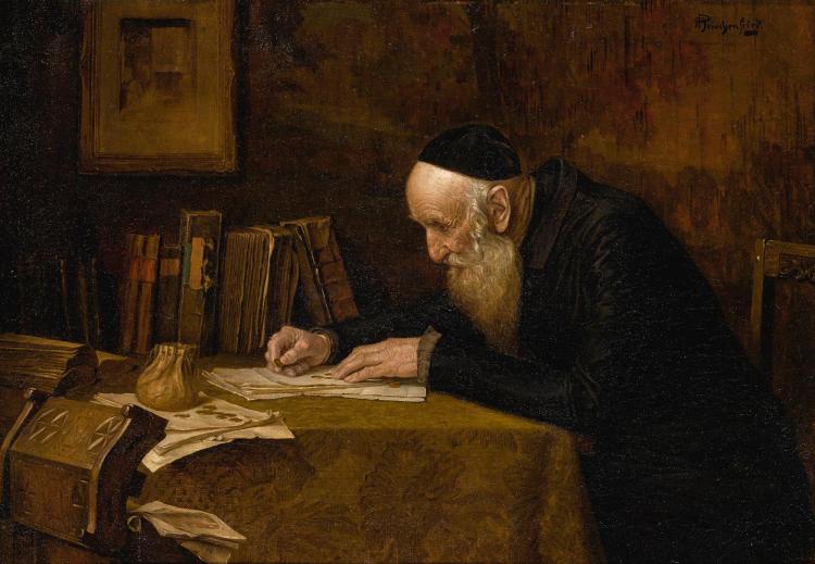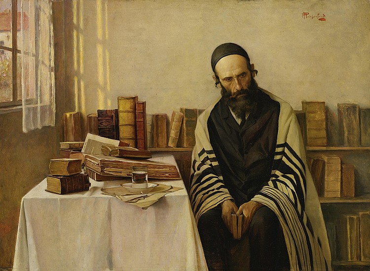 Much of the Jewish art by Priechenfried focused on the quiet contemplation of the holy scriptures.