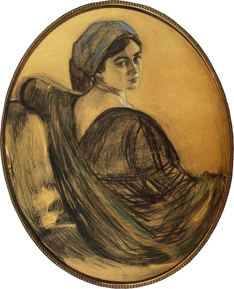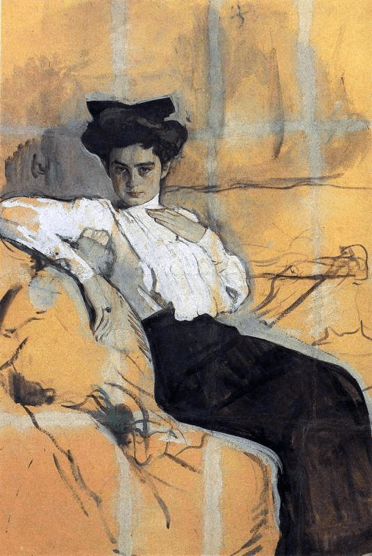 The 1883 work by Kramskoy is simply entitled Unknown. In all the papers and notes left by Kramskoy nothing sheds light as to the identity of the beautiful woman. The Kramskoy portrait appeared at the eleventh exhibition of the Peredvizhniki’s Association Itinerant Art Exhibitions in November 1883. Viewers were mystified by who the model was for this work. Speculation came fast and furiously that it could have been a member of minor royalty or an actress but Kramskoy would not reveal the model’s name. Could she just be Kramskoy’s idea of the fictional heroine in Tolstoy’s Anna Karenina or Dostoevsky’s female character Nastasya Filippovna, in his novel Idiot. Another possible answer to the identity of the woman comes from a book written by Ilya Repin. In 1916 Repin worked on his book of reminiscences entitled Far and Near, with the assistance of Korney Chukovsky and in the book Repin tells of an incident which occurred in the workshop of the Artel of Artists group. He wrote: