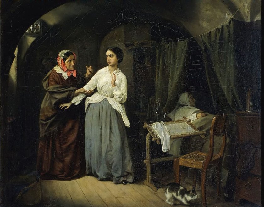 The St Petersburg Academy had, like most European Academies of art, a fixed way of teaching and pushed the long-established practice of depictions focusing on the Neoclassical tradition, as suitable subjects. However, many of the young aspiring painters were not interested in old fashioned historical and mythological subjects preferring to dwell on works of art, the depictions of which embraced social realism. The students were also critical of the social environment that caused the conditions which were depicted in their social realism paintings. It came to a head in 1863 when fourteen young artists, all studying at the St. Petersburg Academy of Art, rebelled against the choice of topic for the annual Gold Medal competition, “The Entrance of Odin into Valhalla”. Instead, the fourteen wanted to depict in their paintings the reality of contemporary Russian life, a Realist style similar to what had emerged in the art world in 19th century Europe and in protest, had refused to take part in the competition. The rebel students asked to be allowed to choose their own subjects but the Academy Council turned down their request, and so they left the Academy. It was such a sensitive issue with political connotations that the rebel artists were put under secret surveillance and the press was forbidden to mention them.