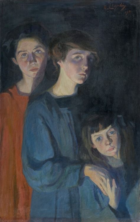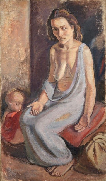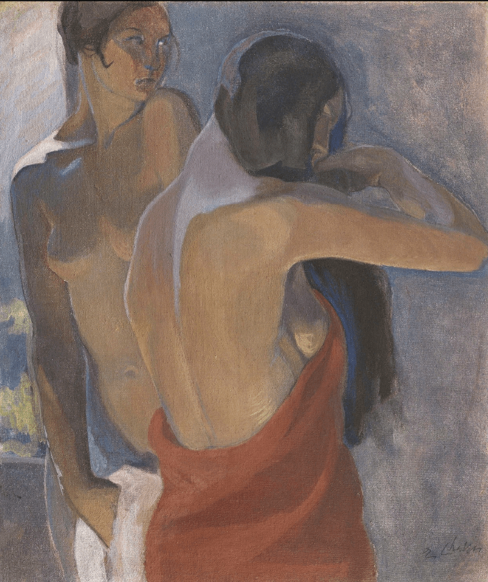 It was around 1918 that Elisabeth Chaplin created what is now looked upon as one of her masterpieces. The painting was entitled Two Nudes or Double Self-portrait, and is one of few works which was not bought by the Galleria d’Arte Moderna in Palazzo Pitti a few years before she died. Elisabeth depicts herself in a dual position, front and back, as she holds onto a red sheet that is tantalisingly falling off her naked body. It is a Symbolist-style work and any likeness to her disappears, giving way to Symbolist features that go beyond a solely naturalistic portrayal. It is a beautiful example of chiaroscuro with the light striking the figure from below. The colour palette she uses is vivid with reds and blues meeting and conflicting. There is a whiff of exoticism about her long, black hair and about the red sheet that looks like a Tahitian wraparound skirt, so much so that the Italian art critic and author of the 1994 book: Elisabeth Chaplin, Giuliano Serafini, stated that it was “an unwitting tribute to Gauguin, which remains one of her most fascinating and emblematic pictures, is the nude conveyed with such fullness of style and truth.” .