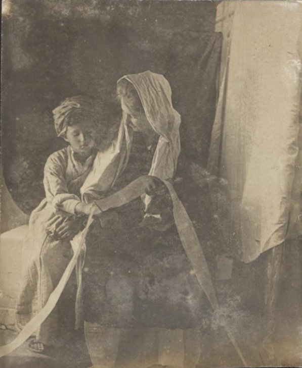Many of Tanner’s subjects are based on his studies of African Americans from Georgia and North Carolina, the men, and women he encountered while traveling in the Middle East and North Africa in 1897 and 1898. and also, of his Caucasian wife, Jessie. She and their seven-year-old son Jesse posed for a photograph which Tanner would use for his 1909 painting, Christ and His Mother Studying the Scriptures which belongs to the Dallas Museum of Art. In the painting, we see the figures of Christ and her son engaged in a private moment of reading together. She has her hand wrapped around her son’s waist as they each hold the scroll from which they are studying. It is a painting exuding the tenderness of a mother and her son. This physical bond we see before us is also a recognition of their spiritual unity.
