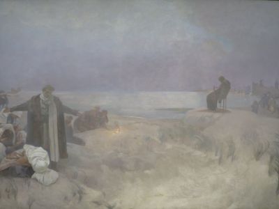 “… As to the ‘great painting,’ its beautiful white panel is always on the wall before me, and I am thinking great things into it. I have thought so many beautiful things into it that it ought to make a good print just as it is. Have patience…”