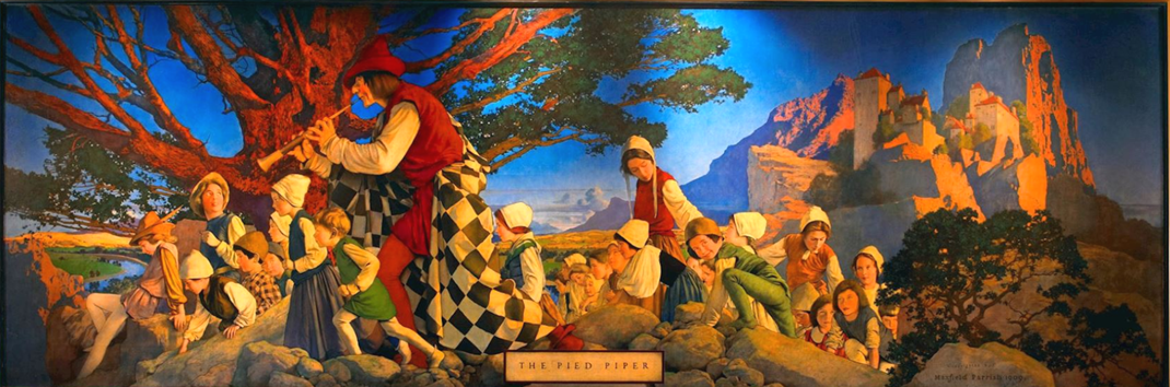 Previous Image Next Image Pied Piper mural by Maxfield Parrish (1909) Pied Piper mural by Maxfield Parrish (1909)