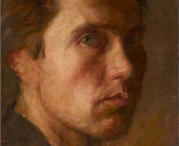 Again, we see this technique with his 1922 painting, Clara. It is a full-length portrait of a girl standing by a wall set in a rolling landscape. She is seen holding a rose and in several of Harvey’s portraits his female sitters are holding a single flower. The work is composed mainly of tones of grey and brown but it is the red of the rosebud which creates the focal point of the work.