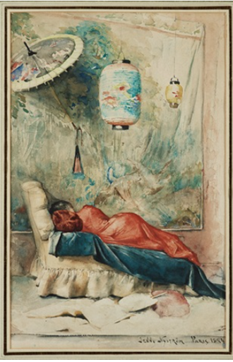 In July 1882, she was awarded one thousand Swedish Krona from the Academy’s special support fund and with this money she was able to travel to Paris. Paris being looked upon as the centre of the art world was very popular with foreign artists and many Swedish artists lived in Paris such as Carl Larsson, his wife Karin and Anders Zorn. Unable to gain entrance to the French Academy of Fine Arts due to its male-only policy, Jenny enrolled at the Académie Colarossi in November and then the Académie Julian. While in Paris, she painted diligently so as to have her work accepted by the Salon. In 1884 her painting From my Atelier in Paris was exhibited at that year’s Salon.