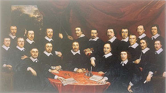 For a time, Cornelius Johnson and his family left Middelbourg and went to live in Amsterdam. Cornelius carried on with his portrait commissions but also took on multi-figure commissions. One such was his 1647 painting entitled The Hague Magistrates.