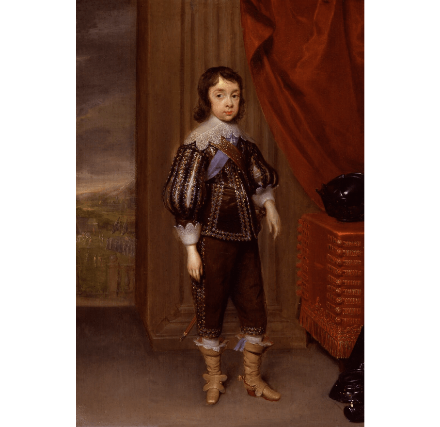 In 1639 Johnson received a royal commission to paint the three young children of Charles I and his French princess wife Henrietta Maria. First was a portrait of Charles’ eldest son, Charles, who would later become Charles II. It depicts the nine year-old-boy as a boy soldier, which appears to be a powerful piece of propaganda. Charles I was executed in January 1649 at the climax of the English Civil War and the country became a de facto republic led by Oliver Cromwell. When Cromwell died in 1658, the English monarchy was restored and Charles II became monarch on his thirtieth birthday on May 29th 1660.