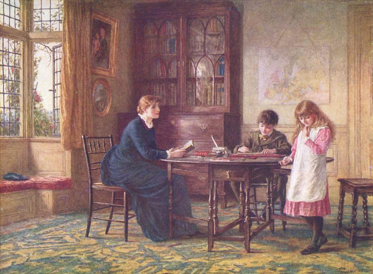 The newly weds went to live in a house at Trafalgar Square, in the borough of Chelsea, close to William Allingham’s best friend, the Scottish essayist, historian and philosopher, Thomas Carlyle. Such was their close friendship that William had taken Helen to visit Carlyle before they married, just to make sure Carlyle approved of his choice of wife ! Helen and William became regular visitors to Thomas Carlyle’s home in London and after many preliminary sketches completed a painting of their good friend. Look at how Helen has incorporated all the details of the furnishings of Carlyle’s room.