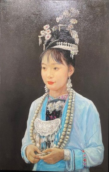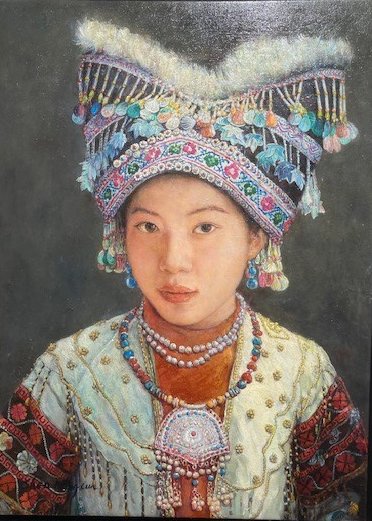 Shen’s paintings capture the chromatic vibrancy of the costumes and ornate silver jewellery with a lightness and confidence that has undoubtedly led to his success. Their adornments are genuine symbols of the wealth, religion, ritual and national consciousness that shape their lives. It is truly remarkable to witness the intimate moments that he often portrays which provide an atmosphere of invitation and intrigue for the viewer. Shen explains his inspirational art: