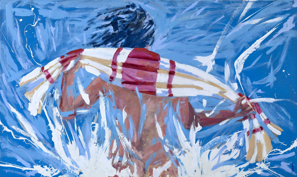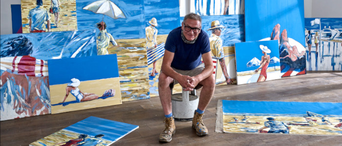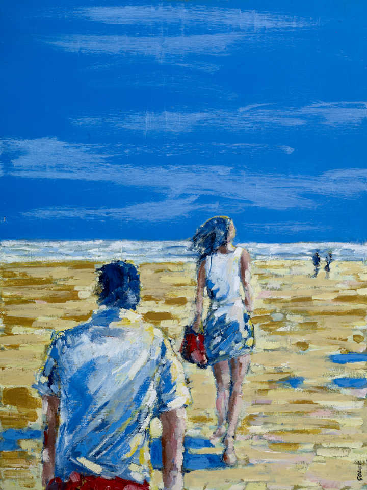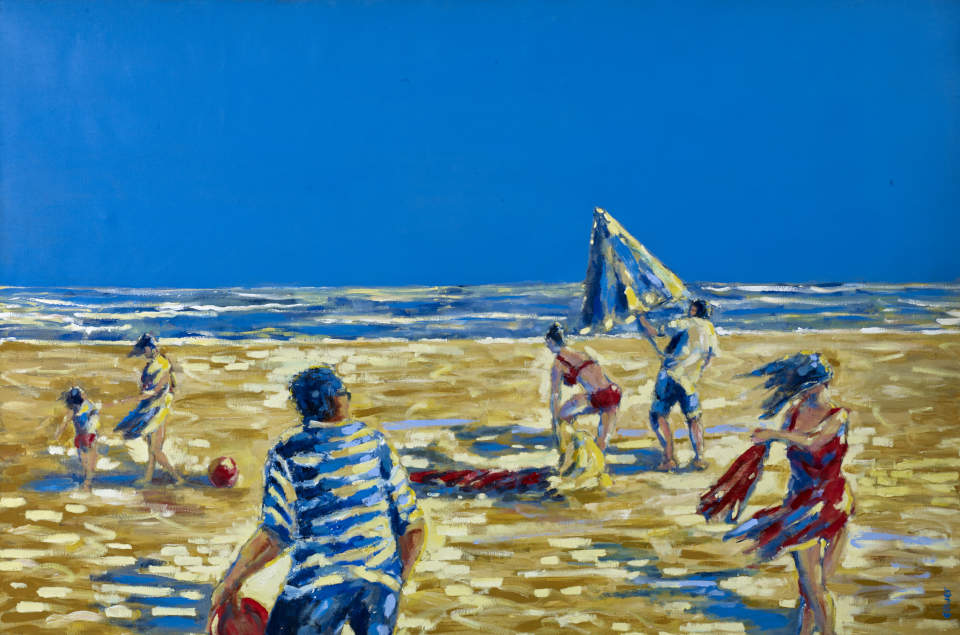 The semi-abstracted, figurative compositions we see in his beach scenes have both a real sense of joie de vie but also intrigue. As observers, we are asked to conjure up narratives about these anonymous characters who are enjoying a day at the seaside and who are immortalised on his canvases.