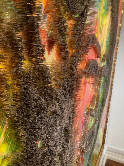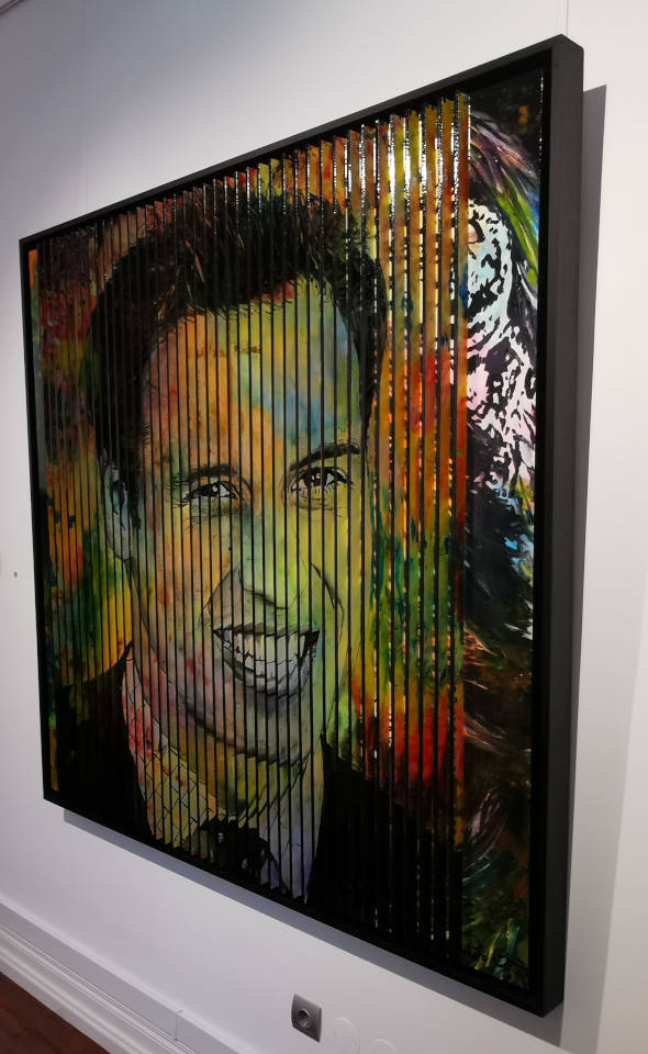 ………..stand to the side of the portrait and when you look again you realise the artwork comprises of numerous pins (180,000 pins) that forms the figure into a three-dimensional shape. You only notice the pins when you view the work side-on.