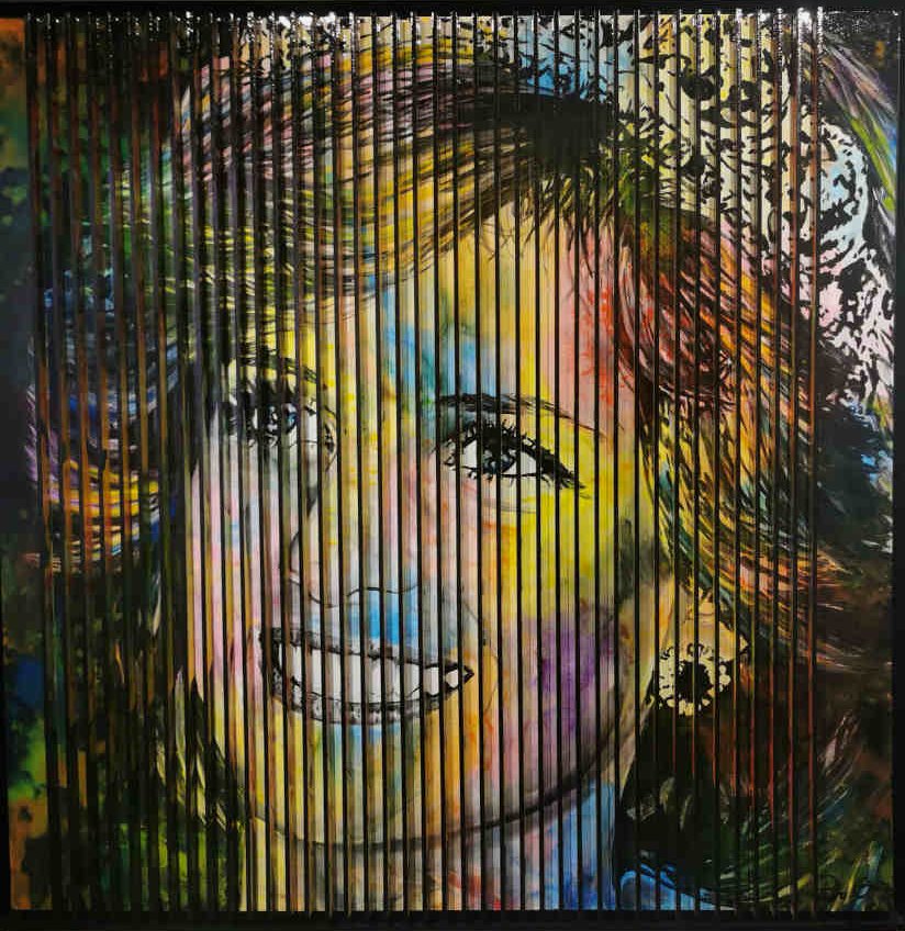 Enjoying a wide creative freedom, Pedro Guimarães uses various resources and materials. One of the strangest and probably the most time-consuming work was a portrait entitled Untouchable. In loving memory of Queen Elizabeth II. For this work, Guimares used a technique which he terms “Untouchable” which gives the work a unique content, curious, and some might say disarming. Standing before the portrait you see nothing unusual but……….