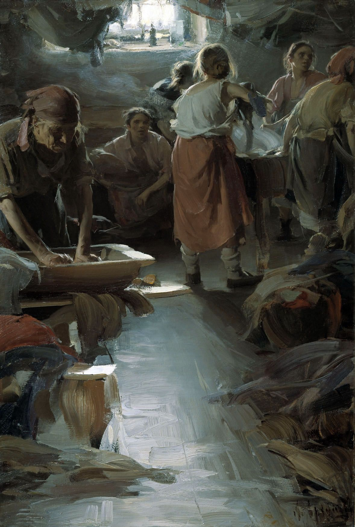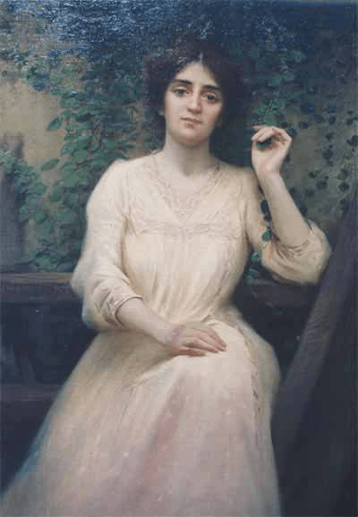 Whilst on the island of Bornholm in 1869, Holger Drachmann met his first wife Vilhelmine Charlotte Erichsen, She had been a good friend and muse for both Drachmann and another artist, Kristian Zahrtmann who was also living on Bornholm and who had painted her portrait when she was fourteen-years-old. Zahrtmann was besotted with the young girl who modelled for him. In a letter in 1868 to his friend and fellow artist August Jerndorff , he wrote: