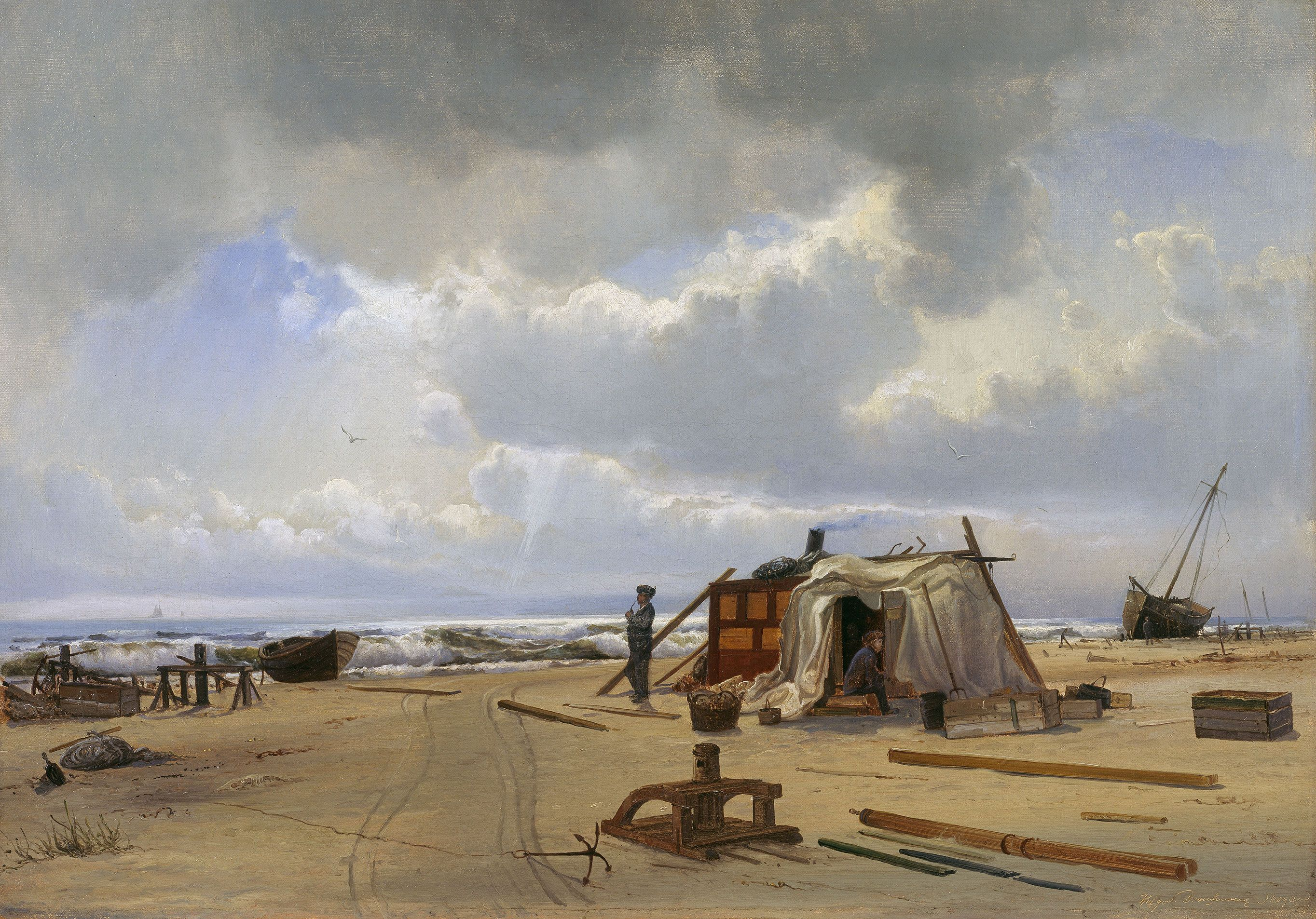 A wreck hut on Skagen’s beach by Holger Drachmann