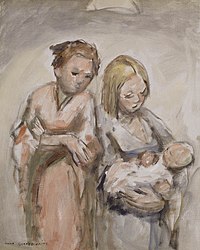 In 1917, Anton Pieck met Jo van Poelvoorde, the sister of fellow soldier Hendrik van Poelvoorde. Jo was a teacher at the Royal Dutch Weaving School. Her first impressions of Anton were that he was friendly, but also taciturn and absent. Gradually he opened up more and became more talkative. Anton and Jo entered into a relationship and twenty-seven-year-old Anton Pieck married twenty-nine-year-old Josephina Johanna Lambertina (Jo) van Poelvoorde, on March 8th 1922 at The Hague. After the marriage the couple moved to Overveen. From their marriage three children were born, Elsa, Anneke and Max.