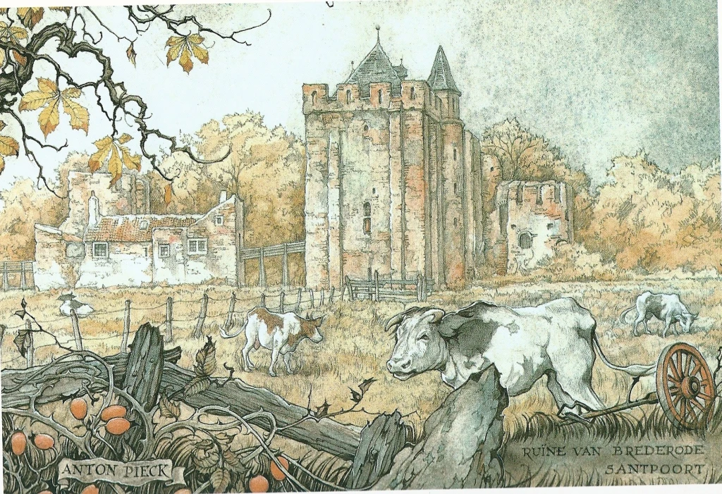 The ruins of Brederode in Santpoort by Anton Pieck (c.1950)