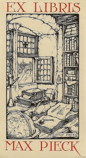 He would also produce a number of ex libris bookplates, a book owner’s identification label that was usually pasted to the inside front cover of a book. Above is one he created for his son, Max.