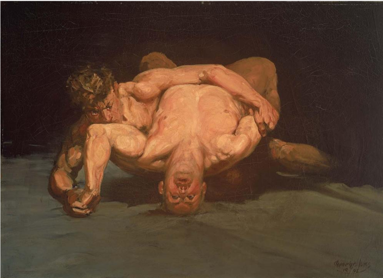 Some art critics had voiced an opinion on Luks’ figurative work saying that he was not good at depicting human anatomy. It is thought that Luks’ baulked at this sleight on his ability and in 1905 produced a complex painting of two nude wrestlers, so as to counteract their criticism. The painting is now housed in the Museum of Fine Art, Boston, which described the work: