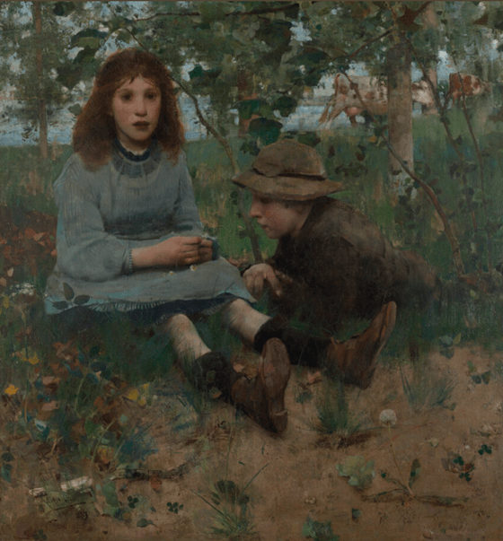 The Glasgow Boys group gained inspiration from the progress in landscape painting in France and sought to take greater notice on the natural effects of light in the open air when setting about painting Scottish rural scenes. The group also took to the French style of en plein air painting when, whilst outdoors, they would paint directly onto the canvas. The painter who had the greatest influence on this group of artists was the French realist painter, Jules Bastien-Lepage whose down-to-earth depictions focused on the real, often, impoverished life that surrounded his village. For all Edmund Walton learnt about art in Dusseldorf and the Glasgow School of Art, nothing compared to the knowledge he gained working alongside his fellow “boys”.