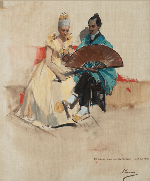Edward Arthur Walton Artist, with his Fiancée Helen Law or Henderson as Hokusai and the Butterflyby Sir John Lavery (1889)