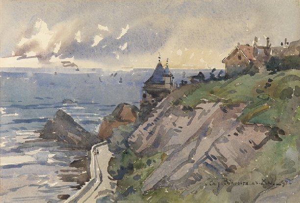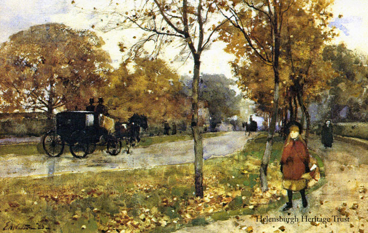 In 1883, Edward Walton joined James Guthrie, at Cockburnspath, Berwickshire where he honed his talent as a painter in both oil and watercolour in the open air. He also spent time in Helensburgh, an affluent coastal town on the north side of the Firth of Clyde where he completed a series of watercolours depicting the well-dressed affluent residents of this prosperous suburb.