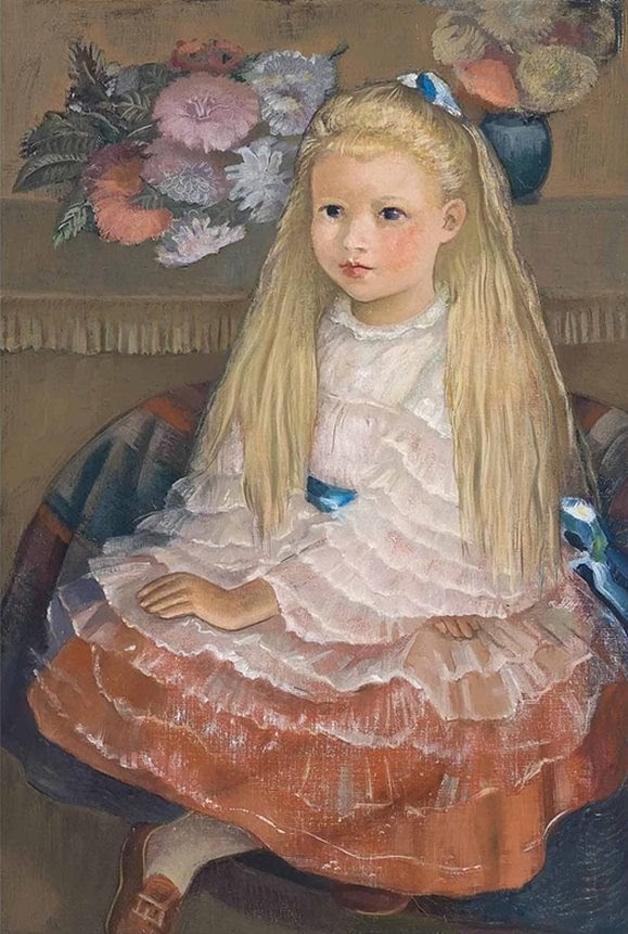 The full-length painting was displayed in the small gallery and was quite impressive. However, for me, more impressive was the full length painting next to it. It was entitled Girl in a Red Shirt and the artist was given as Ottilie Tolansky and I knew I had to find out more about this unknown (to me) artist.