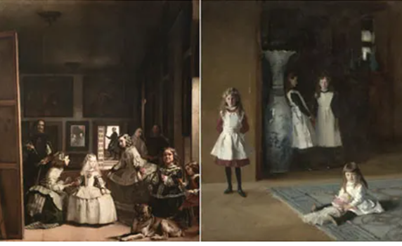 A composite image of Las Meninas by Diego Rodriguez de Silva y Velazquez and The Daughters of Edward Darley Boit by John Singer Sargent.