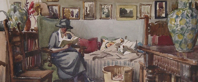 Edward and Helen married and went on to have four children, the eldest of whom was their daughter Cecile who was born on March 29th 1891. In 1894, Edward Walton, his wife and two-year-old Cecile moved from Scotland to London. In the summer the Walton family travelled to Suffolk where they rented the Old Vicarage at Wenhaston, which was a few miles from Walberswick, a village on the Suffolk coast, where Frank and Jessie Newbery lived and the two families painted together in the summer. Cecile Walton and Newbery’s daughter Mary became close friends and later both developed strong links with Galloway area of Scotland. The Walton family returned to Scotland in 1904 and took up residence in Edinburgh where Cecile enrolled at the Edinburgh College of Art.