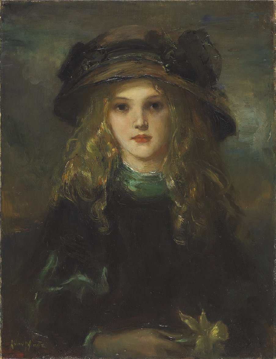 In 1896 Laura returned to Canada for a short spell to help look after an ailing relative. She returned to Paris and the Academy Colarossi and was promoted to the post of massiere (Studio head) at the Académie Colarossi. In 1898 she returned to Canada in 1898 and set up a studio in Toronto to teach and paint. In 1906, she moved to Montreal to continue her career and built up a large clientele that regarded her as the premier Canadian portraitist of children. Following the death of her sister in 1915, she returned to Toronto and married her brother-in-law Charles W.B. Lyall and cared for his children of her sister’s marriage, eleven in all, but many had left home by then. She set up a studio in the attic of their home, and started signing her works with her married name. Laura Munz Lyall died in Toronto in 1930, aged 70.
