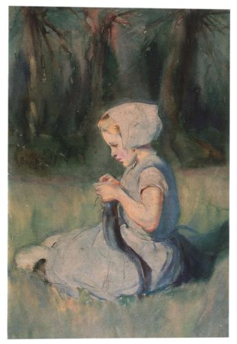 Girl Knitting in a Field by Wilhelmina Douglas Hawley