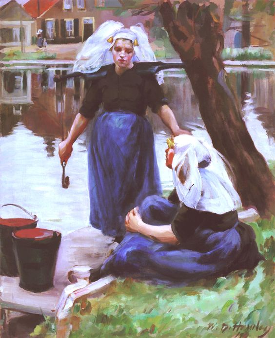 To escape the cold climate of New York, Wilhelmina spent the winter of 1891/2 on the island of Bermuda where she fell in and out of love with a mysterious Englishman whom she had agreed to marry. Fortunately, she realised the error of her judgement and the two split up. Once again, like so many American artists of the time, who succumbed to the magnetism of Paris, Wilhelmina was drawn towards the French capital to continue with her artistic tuition. On June 18th 1892, just a month before her thirty-second birthday, Wilhelmina once more, set sail for Europe on the Holland-America steamer Veendam. During her Atlantic voyage, Wilhelmina was accompanied by the Dutch-American artist John Vanderpoel and his wife Jessie Elizabeth Humphreys. Vanderpoel. He was a well-known artist and taught at the Art Institute of Chicago where one of his tudents was Georgia O’Keeffe, and it was he who most likely suggested to Wilhelmina that she should spend the summer months at the charming village of Rijsoord near Dordrecht in the Netherlands, where he had founded an artists’ colony in 1886.