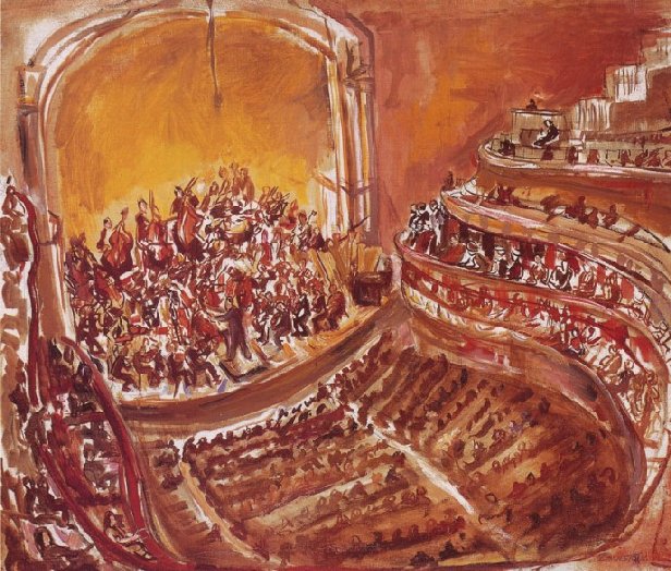 Two subjects that fascinated Theresa Bernstein and were often depicted in her works of art were her love of music which she had got from her husband and the depiction of crowds and both these elements can be seen in her depiction of musical events at the Metropolitan Opera House and Carnegie Hall,