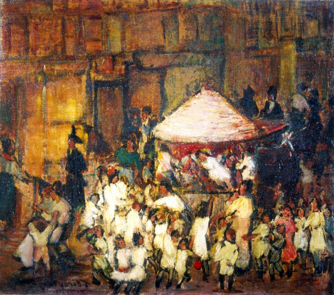 John Weichsel was the founder of the People’s Art Guild in 1915. It was to be an alternative to the system of traditional fine art galleries. The Guild would set up exhibitions in various unconventional spaces and by doing so, the Guild brought avant-garde art into the immigrant settlement houses and tenements of the Lower East Side with the goal of exposing a new set of people to modern art and at the same time, providing artists with direct contact to new markets. One of the helpers at the Guild was William Meyerowitz.